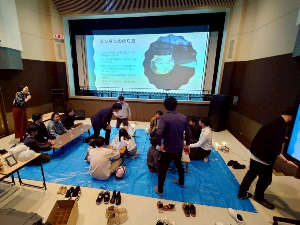 事業説明の後は、ワークショップで作るランタンを実際に作る講習がありました。