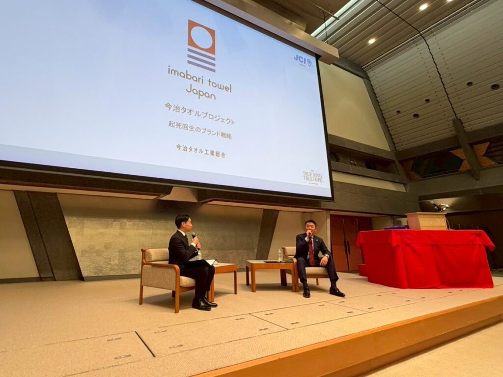 このセミナーにはなんと、今治タオル工業組合の田中理事長が登壇されました。