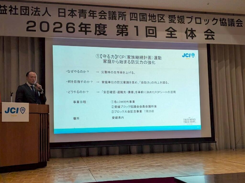 全体会議では、各地青年会議所理事長によるLOM紹介や、愛媛ブロック協議会の事業説明がありました。