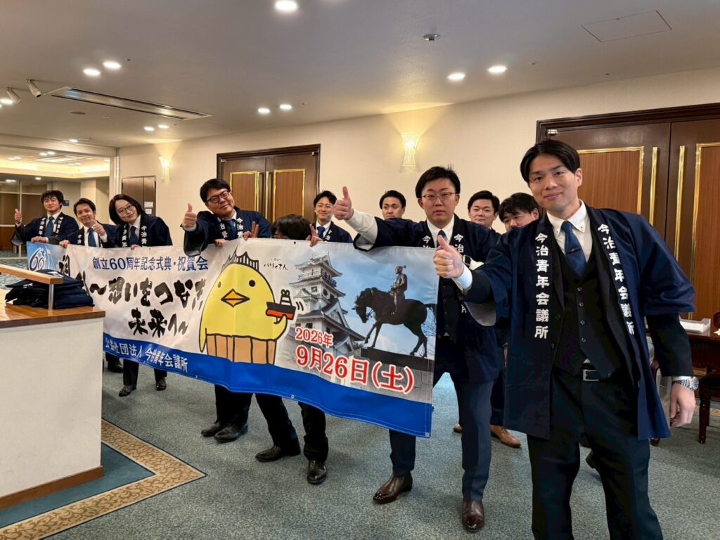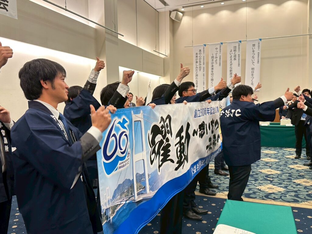 加えて、今回の例会では、創立60周年記念大会のPRの機会をいただき、今治JCメンバーにも現地に来ていただきました。