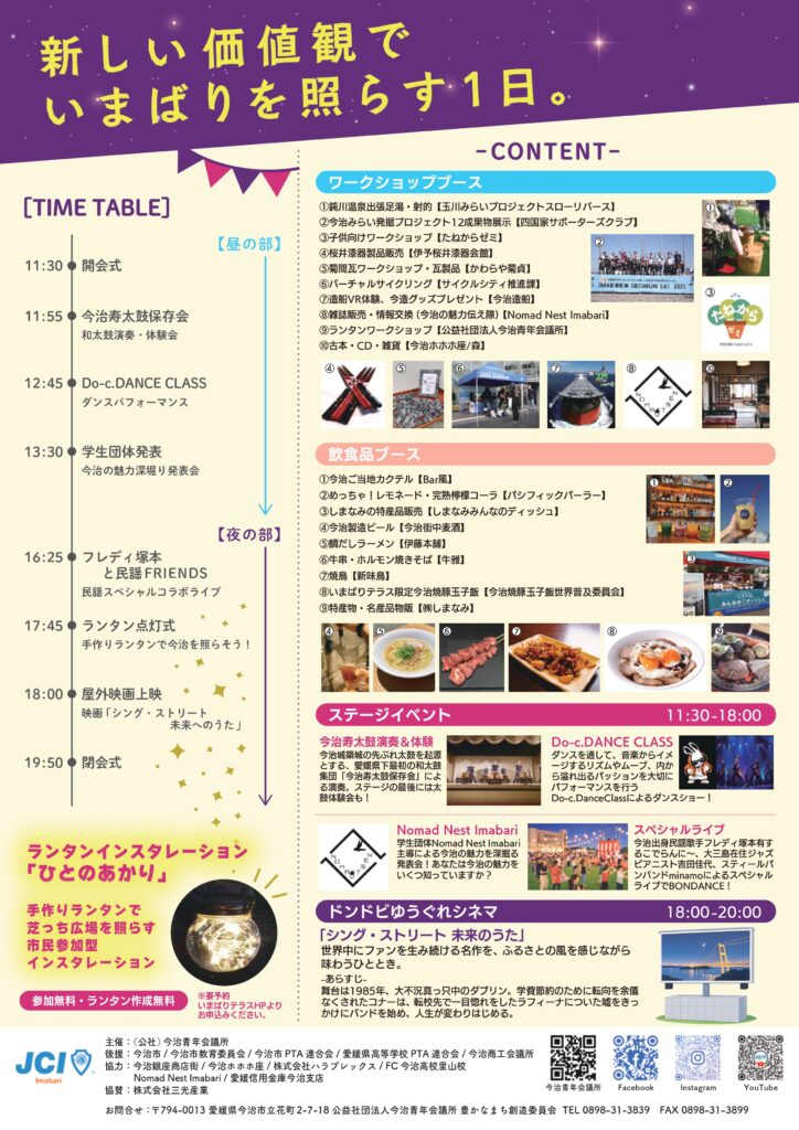 この事業は、今治市の中心市街地を活用する中で、今治ならではの精神的豊かさを育むことを目的としております。